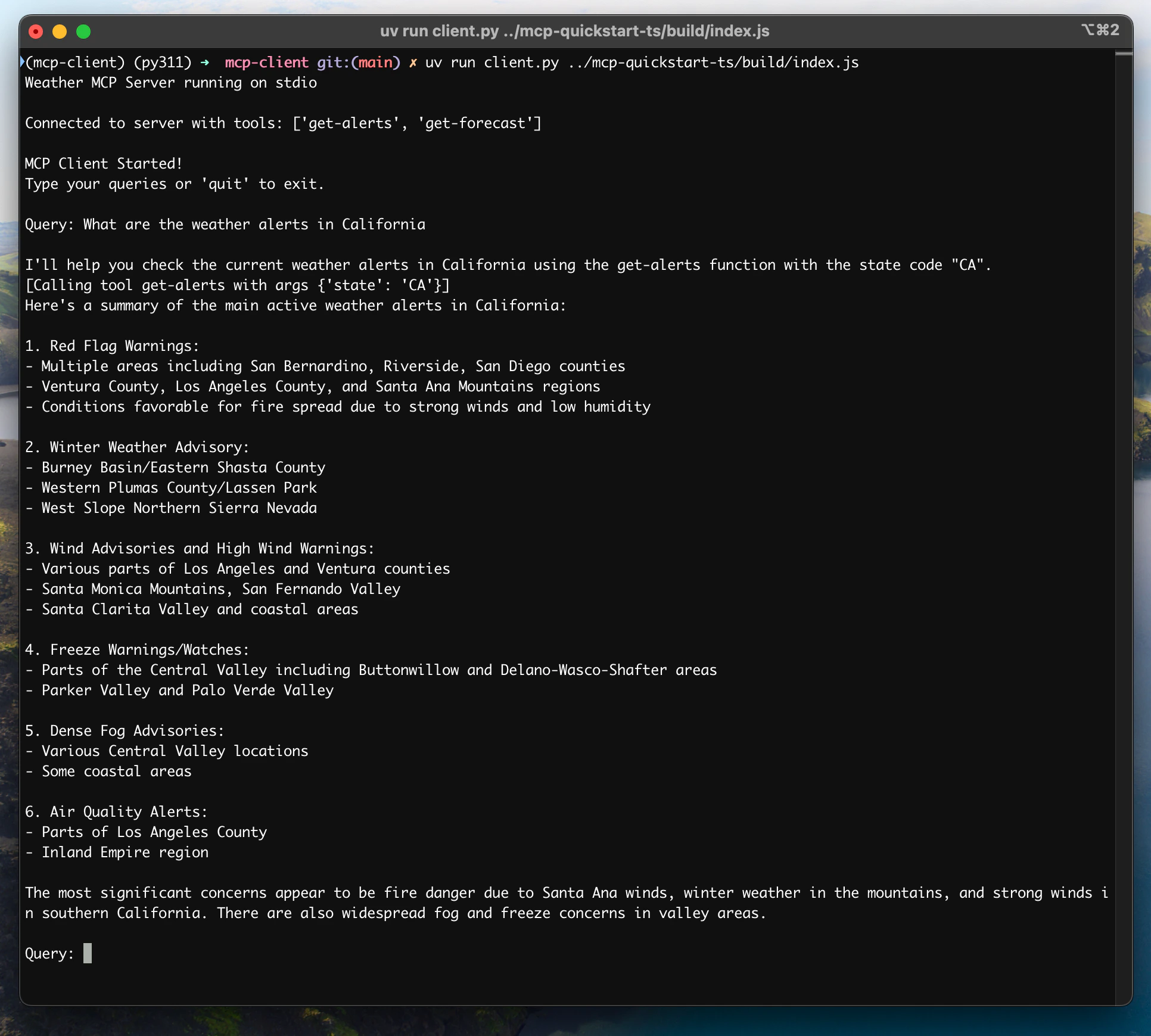 uv run client.py /Users/username/projects/mcp-server/weather.py