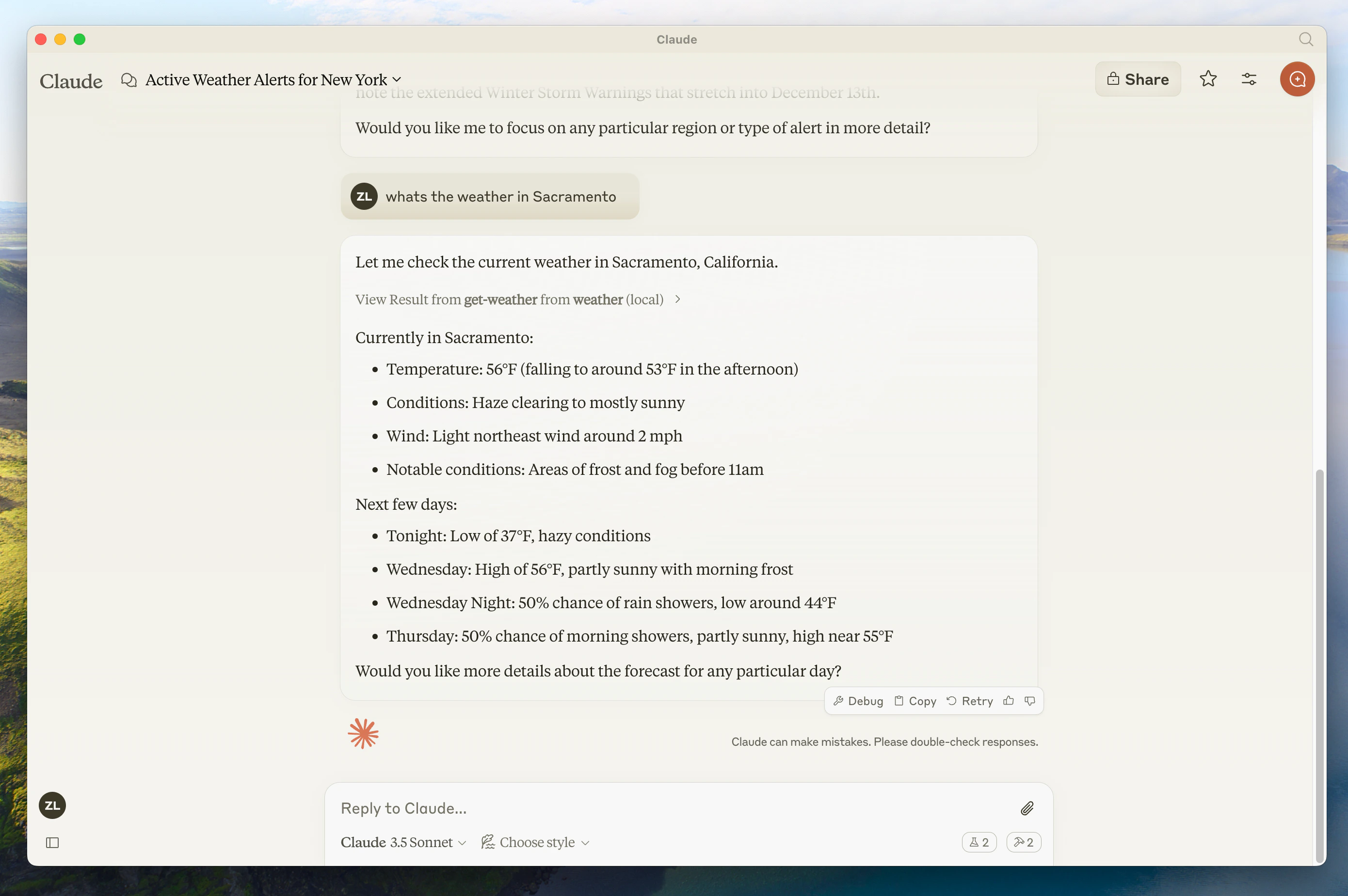 Description: "获取某个位置的天气预报",